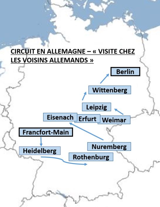 en Thuringe, la citée natale de Johann Sebastian Bach. Déjeuner, puis visite guidée de la forteresse de Wartbourg, inscrite au patrimoine mondial de l’UNESCO. Installation à l’hôtel dans la région d’Erfurt.
